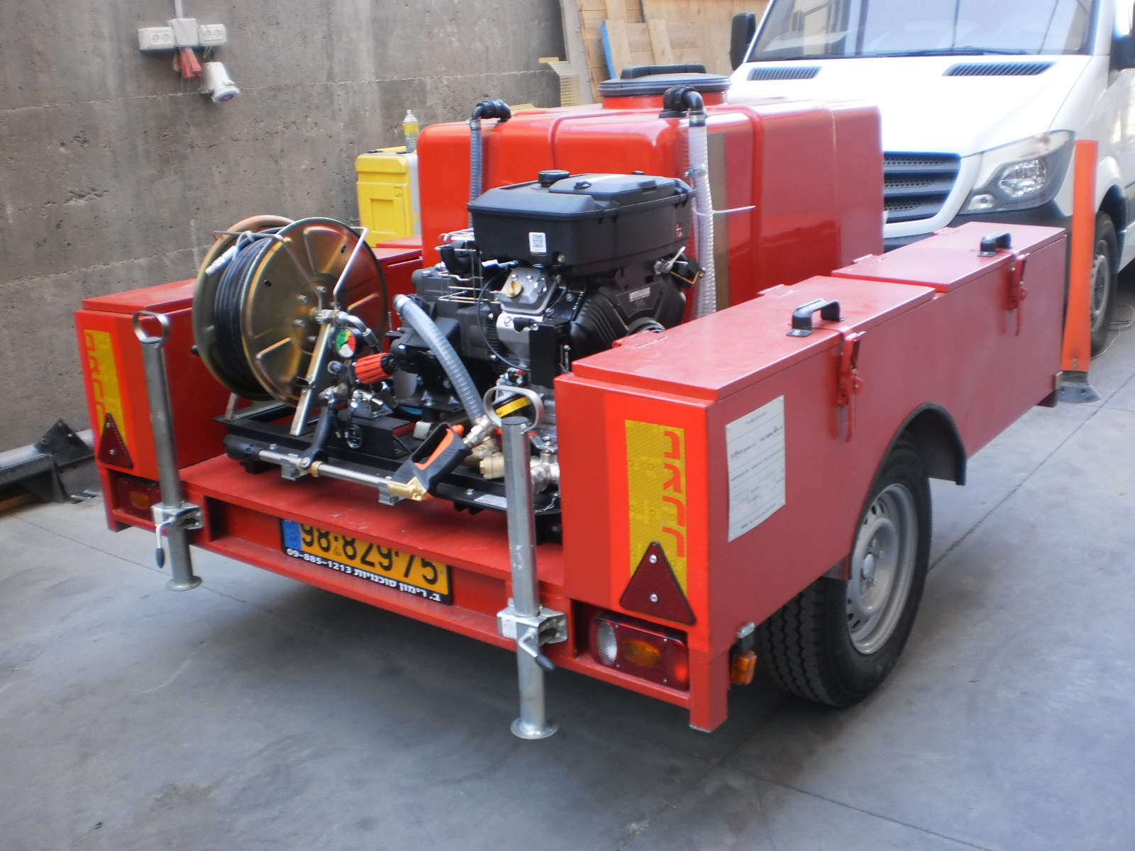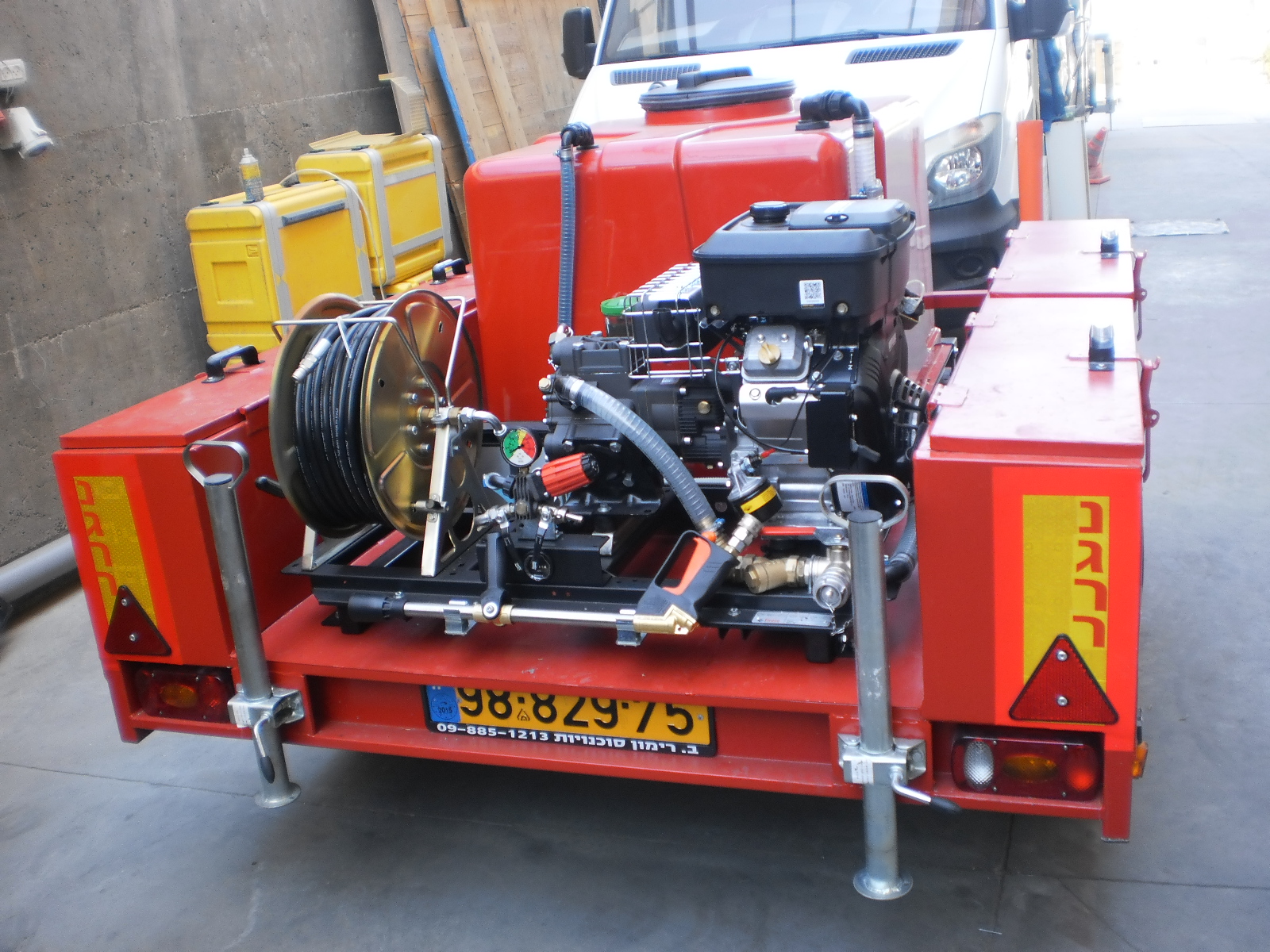 עם מיכל 600 ליטר מים מותאם לרכב