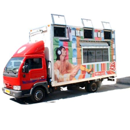 האולפן הנייד כולל את כל ציוד ההגברה המקצועי הקיים באולפן הרגיל. חלון פנורמי מאפשר לשדרן ליצור קשר עם הקהל בנקודת השידור. חדר הדי-ג`יי כולל: