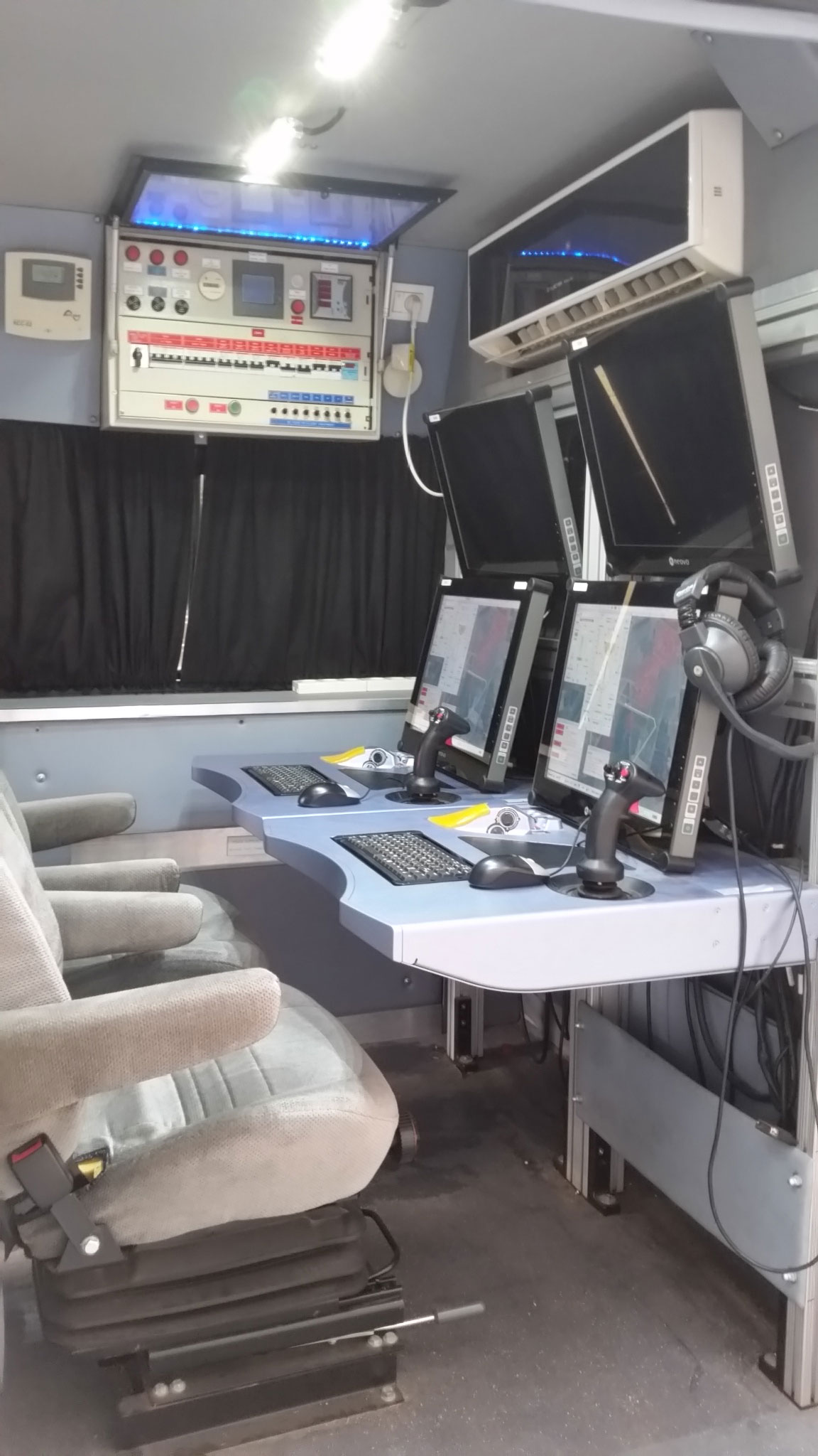 תחנה קרקעית ניידת לשליטה בכטב`מים תכולה: 2 תחנות עבודה למפעילים, מערכת אנרגיה היברידית – למשך פעולה ממושך מערכת תקשורת מיזוג אויר מלא תאים יעודיים לציוד הטסה, למצלמות ולחלפים דגמים מותאמים לדרישות הלקוחות, בארץ ובחו`ל