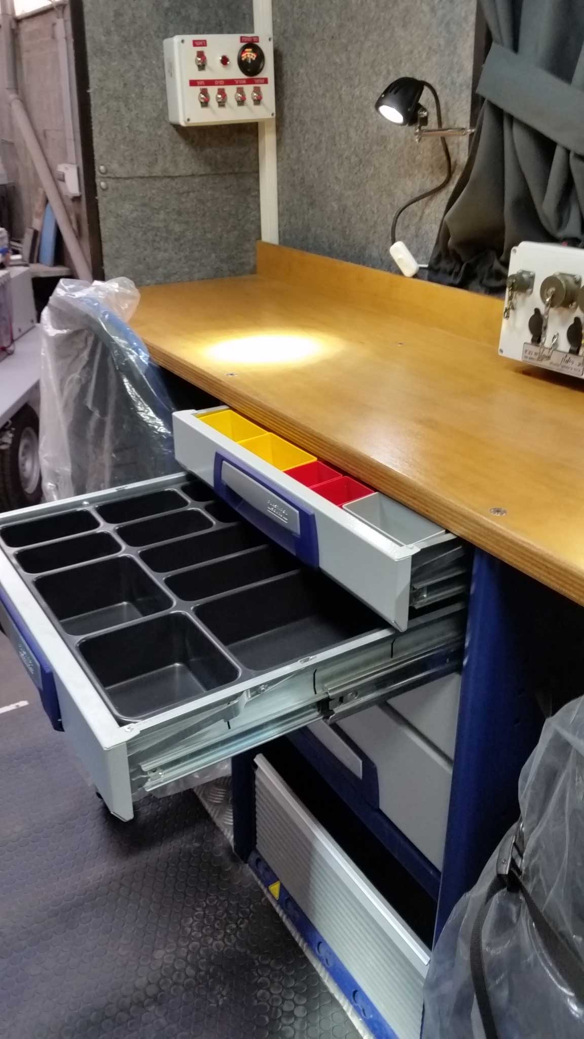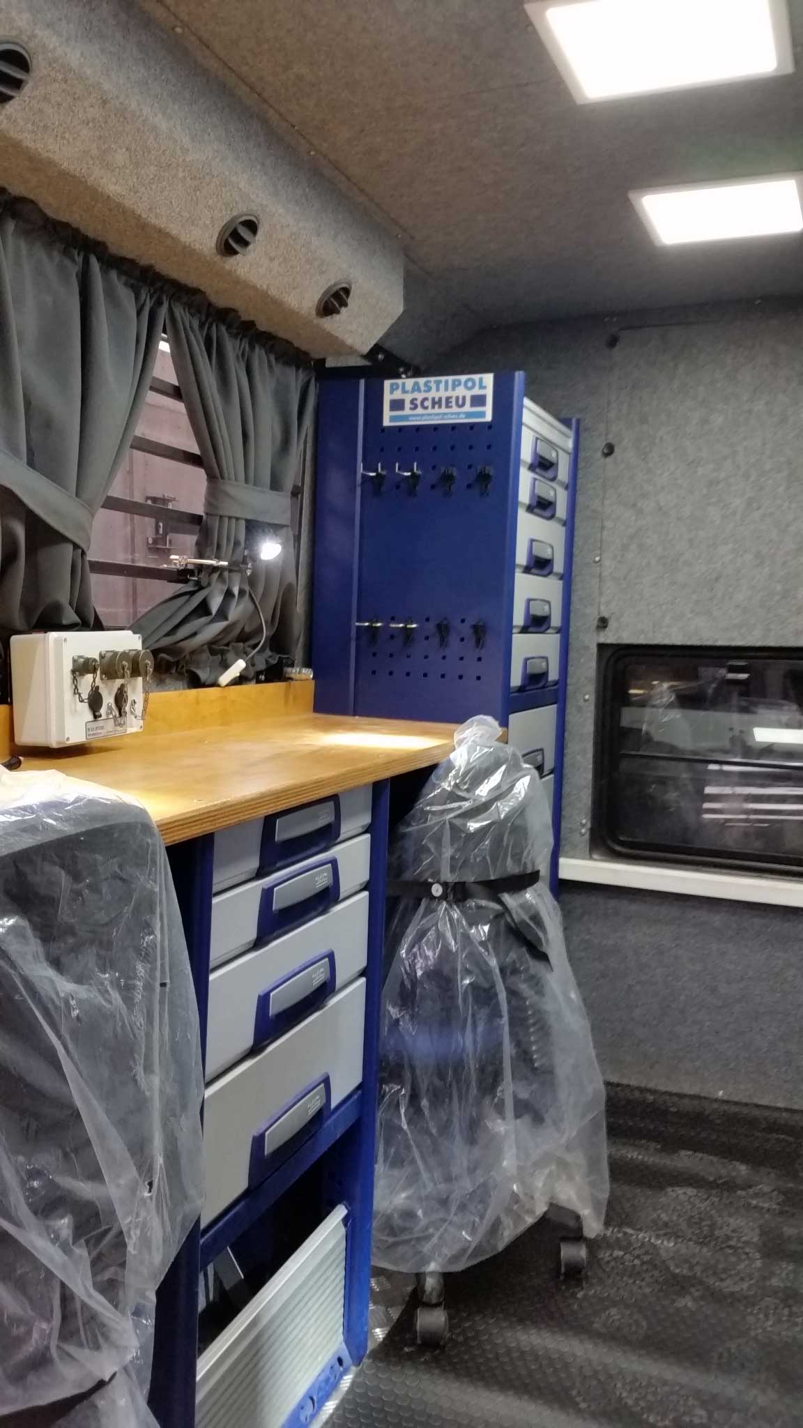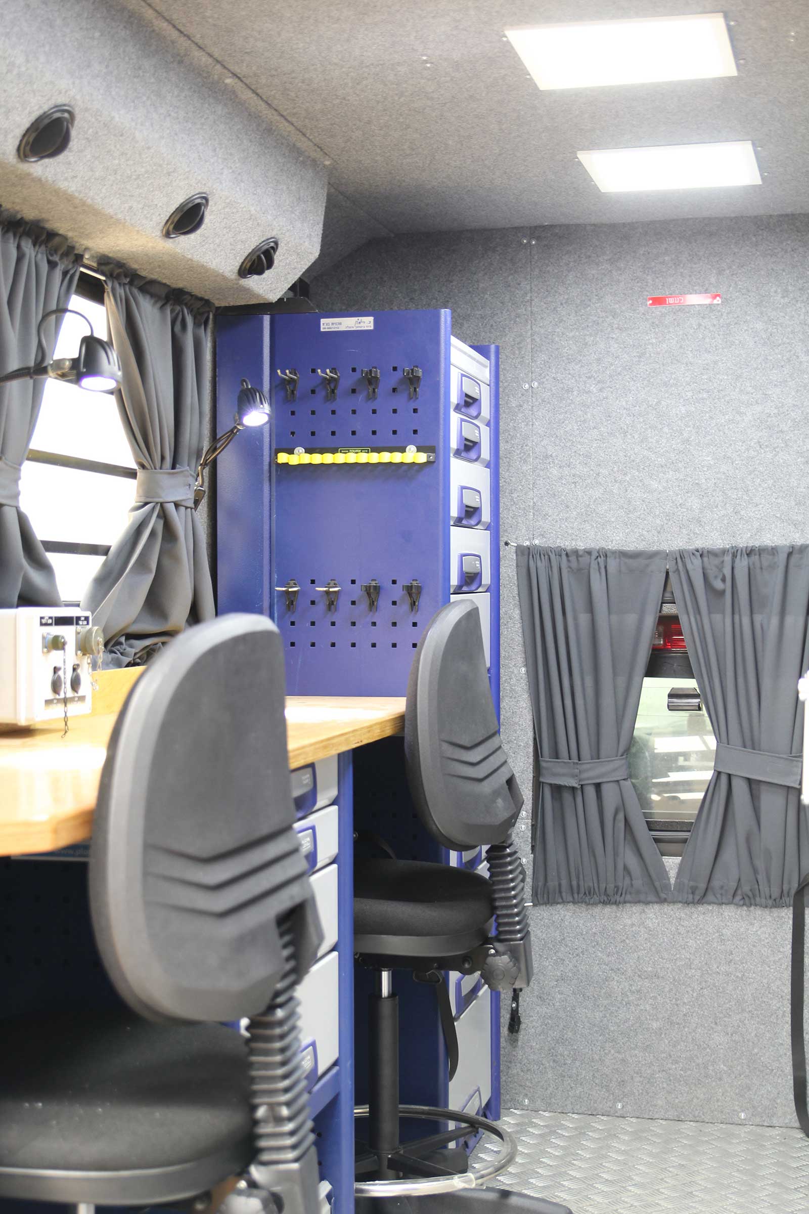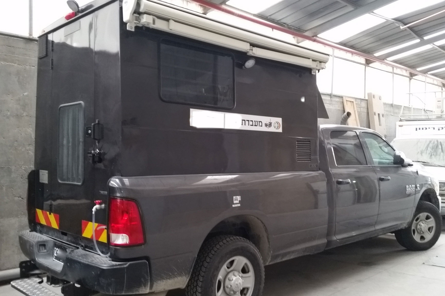 זיווד רכב ניידת שרות אחזקה דיגום ואיבזור טנדר דודג' ראם לתצורת ניידת שרות בשדה: מערכת חשמל AC + DC : מאפשרת עבודה ממושכת ללא הנעת הרכב תאורת לדים איכותית – עוצמה גבוהה, לא מסנוורת, עמידה בטלטולי הדרך מיזוג אוויר / איוורור ארונות מגירות איכותיים מתוצרת גרמניה: מגירות טלסקופיות, מדפי כלים, שולחנות עבודה מעץ, מלחציים וכלי עבודה מדחס אוויר + צנרת לחץ ערכה סניטרית לניקוי ולשטיפת ידיים מערכת תקשורת ואבטחה