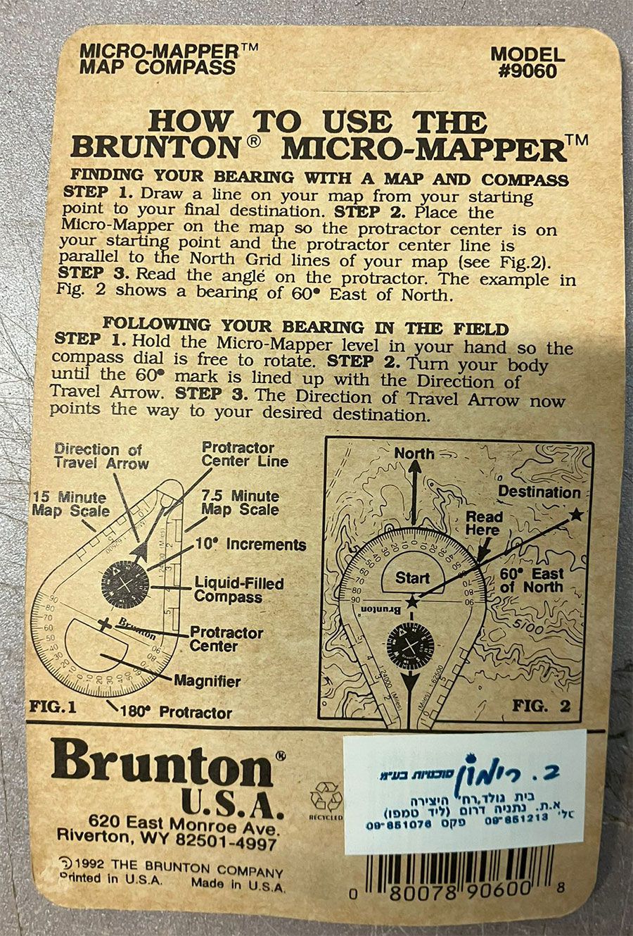 מצפן כיס, רוכסן הצורת משיכה, מכיעה עם שרוך הנקשר סביב הצוואר או למחזיק מפתחות, אפשר לחבר לחולצה או מפה. לשים בכיס ושיהיו עליך תמיד Brunton 0930 compass
