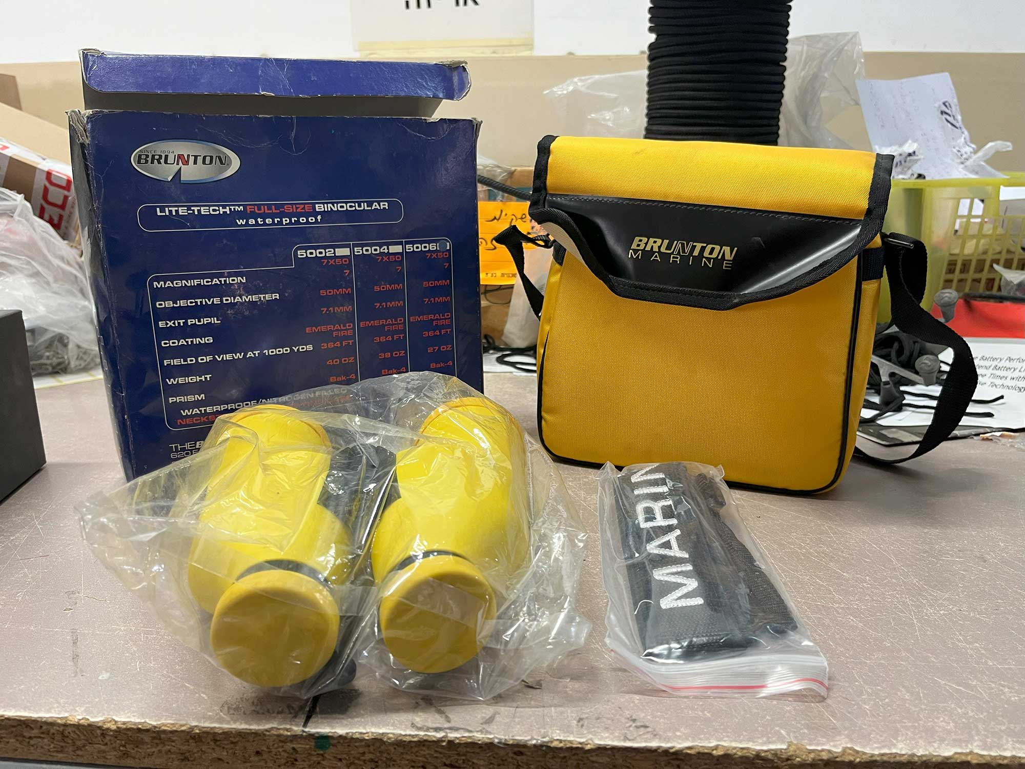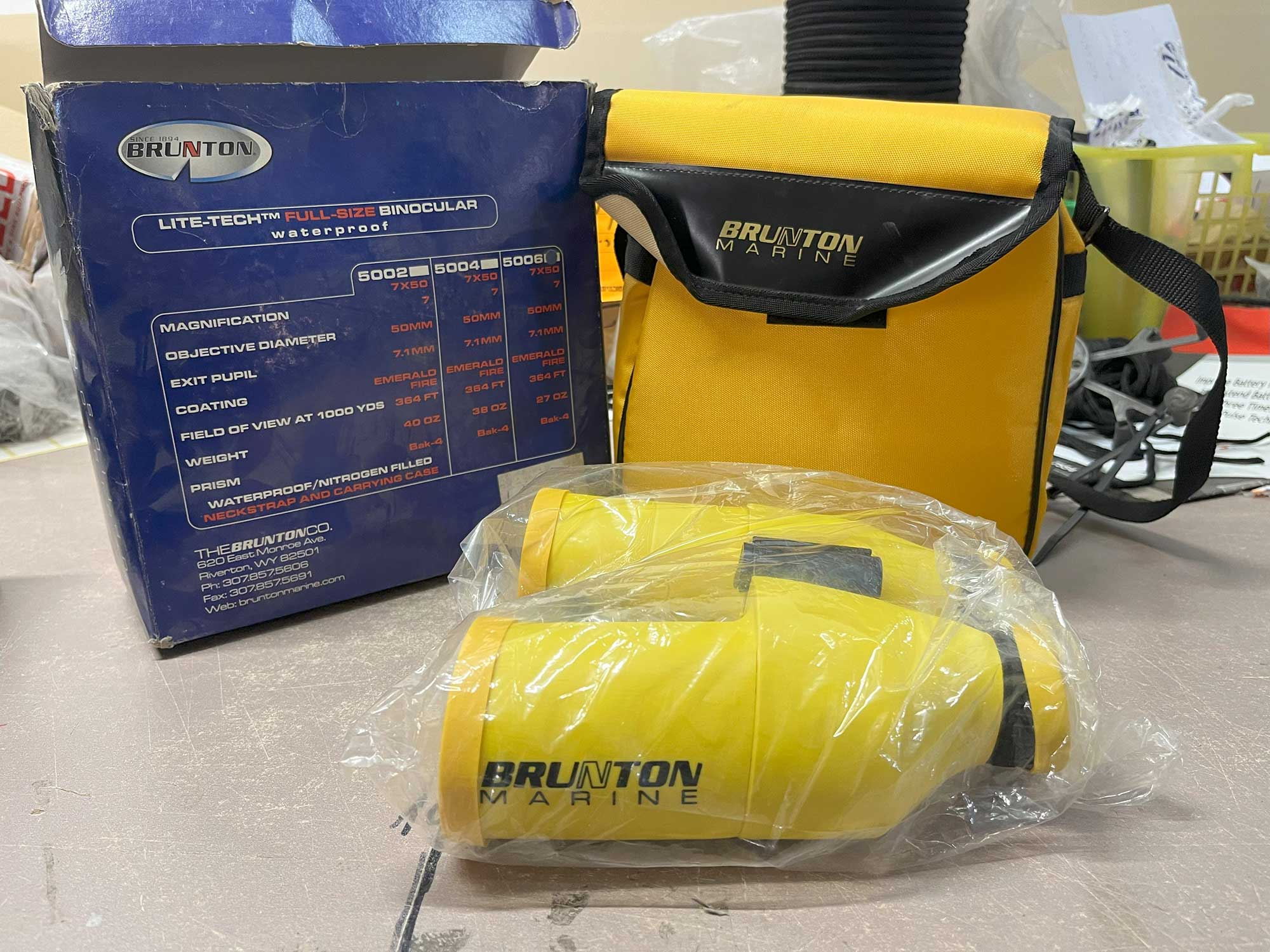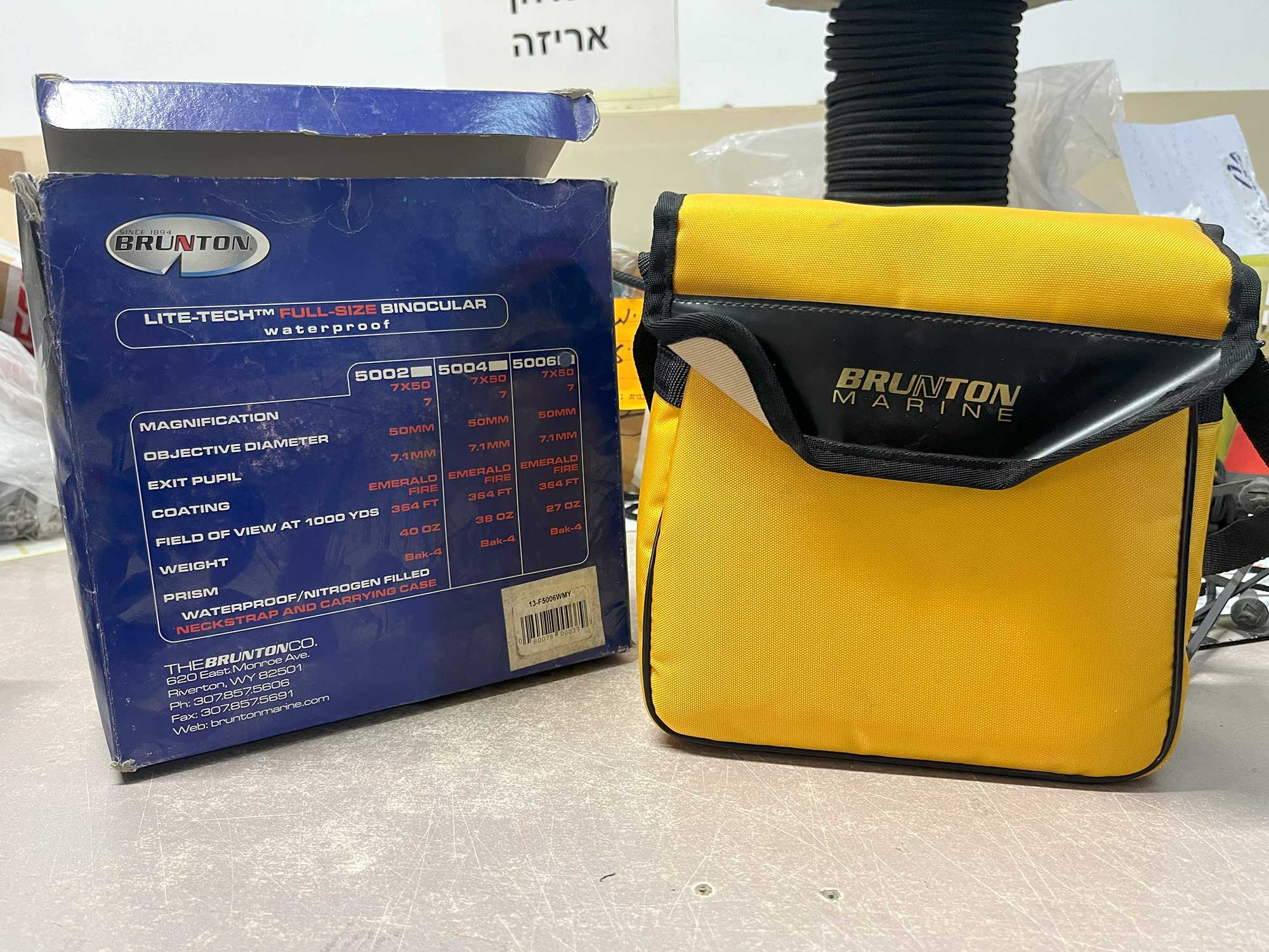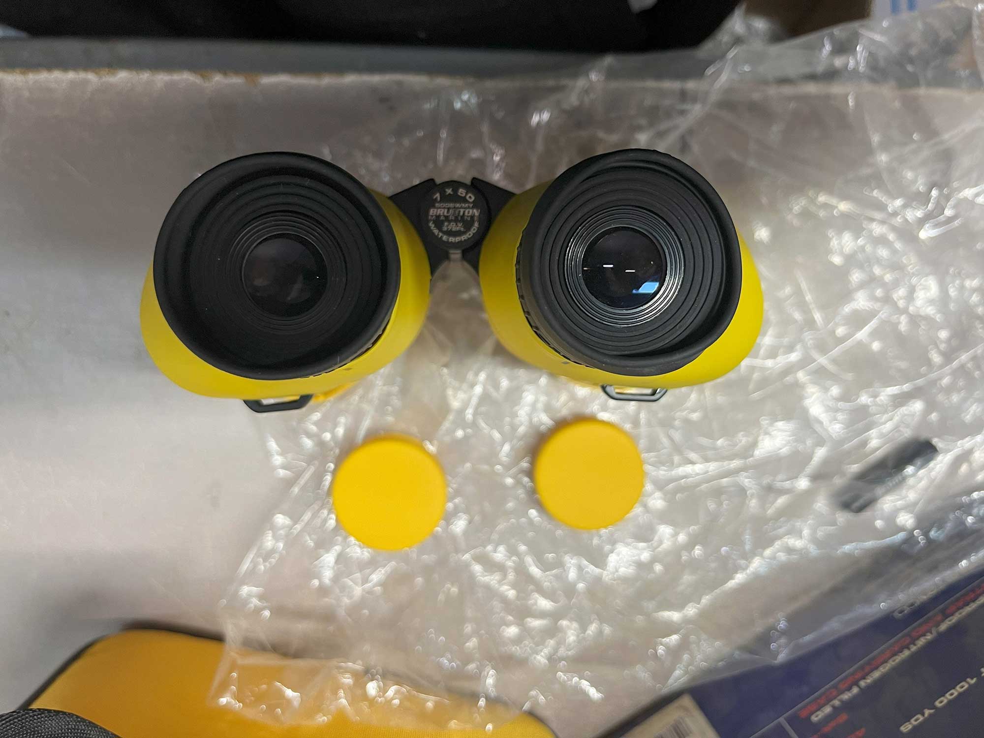 משקפת של חברת BTUNTON, חסינה ממים, מגיעה בקופסא חדשה עם הנילון, אליה מצורף תיק צהוב המאחסן את המשקפת עצמה ורצועה שמתחברת אליהץ