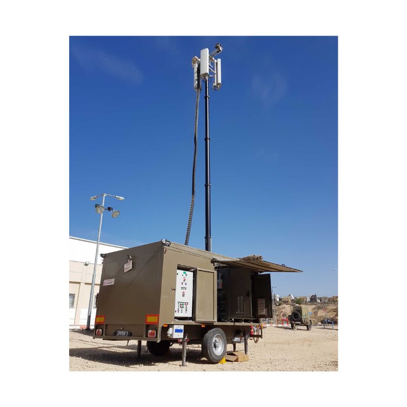 גרור תקשורת סלולרית שנבנה עבור צה"ל עגלת שטח עם עבירות טובה תורן פנאומטי עם בוכנת הרמה גנרטור רב עוצמה המספק אנרגיה לגרור הגרור מאפשר תקשורת סלולרית גם באזורים ללא קליטה