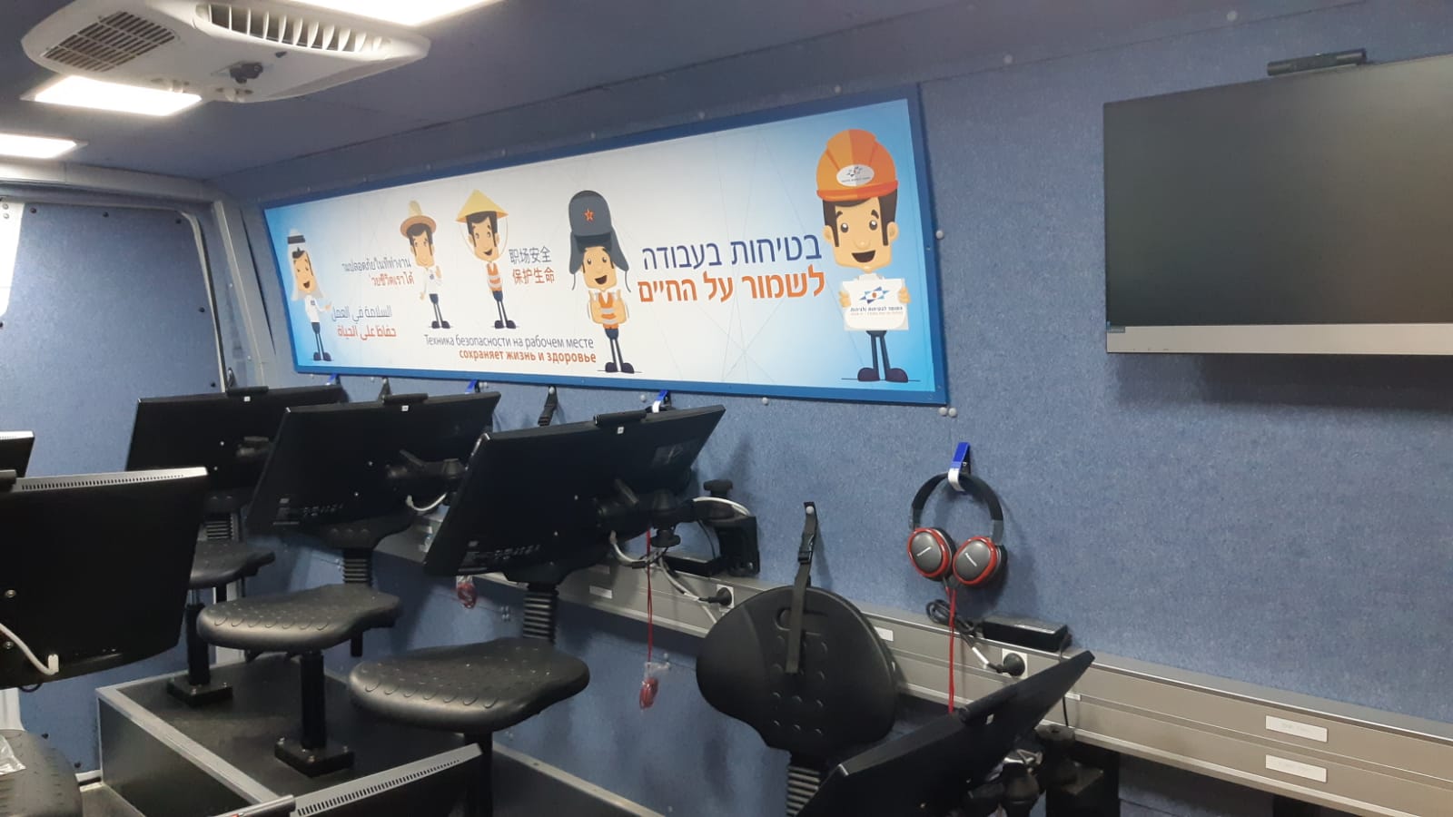 הניידת מאפשרת להגיע עד לאתר, ולהעביר הדרכה לעובדים במקום עבודתם, כל אחד בשפת האם שלו ובנוחות מירבית.