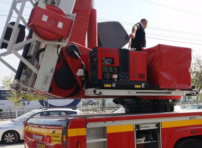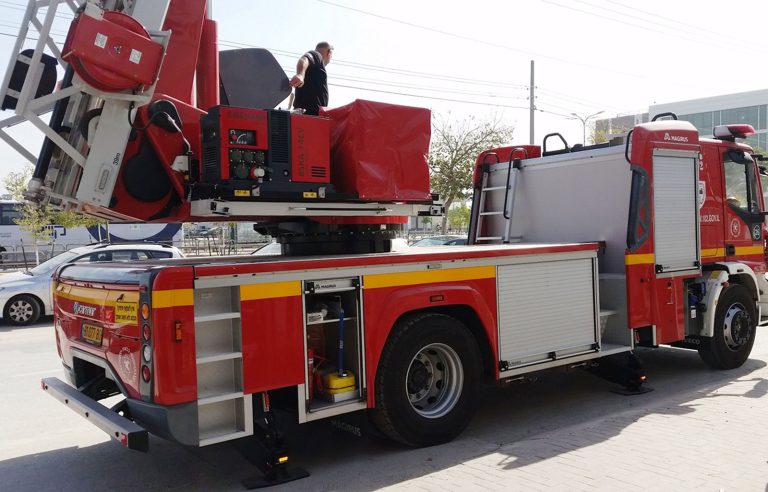 גנרטור מבית GEKO גרמניה מותקן על רכב כיבוי אש, גנרטור להנפת סולם.