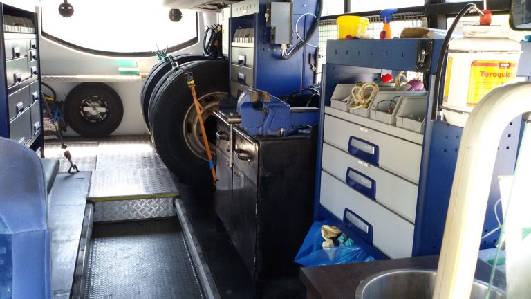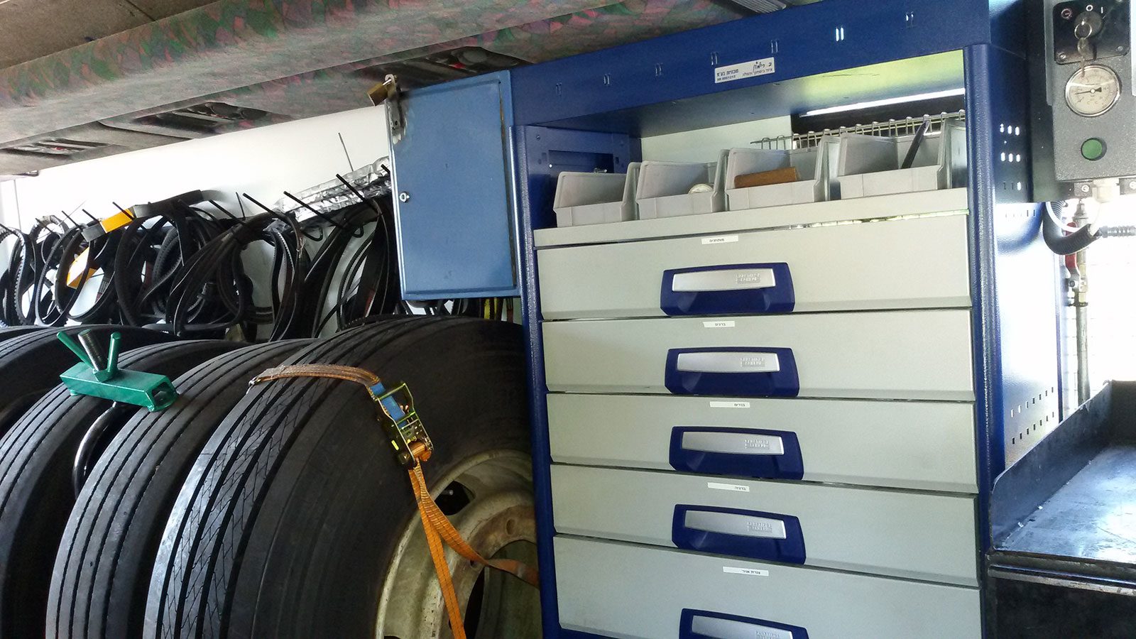 דיגום וזיווד אוטובוס אגד סדנ"ע ארוניות ציוד איכותיות תוצרת גרמניה מגירות טלסקופיות על מסילות מחוזקות מדפים ואיבזור עשיר לאירגון כל כלי עבודה אמצעים לקשירה ועיגון של ציוד כבד בנסיעה דיגום – מחלקת התקנות בבית רימון